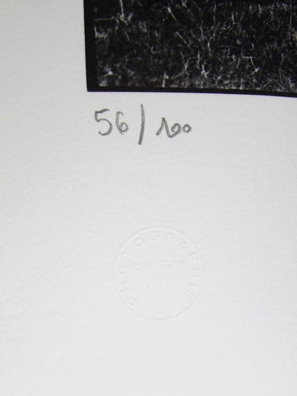 Sans lieu, sans mention d'éditeur, sans date (circa 1970-1995). 65 x 50 cm. Tirage photographique original sur papier d'Arches. Tirage limité à 100 exemplaires, numérotés et signés au crayon par le photographe. Tampon à sec "Photographie Christian Louis".