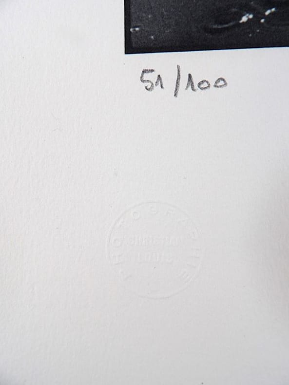 Sans lieu, sans mention d'éditeur, sans date (circa 1970-1995). 65 x 50 cm. Tirage photographique original sur papier d'Arches. Tirage limité à 100 exemplaires, numérotés et signés au crayon par le photographe. Tampon à sec "Photographie Christian Louis".