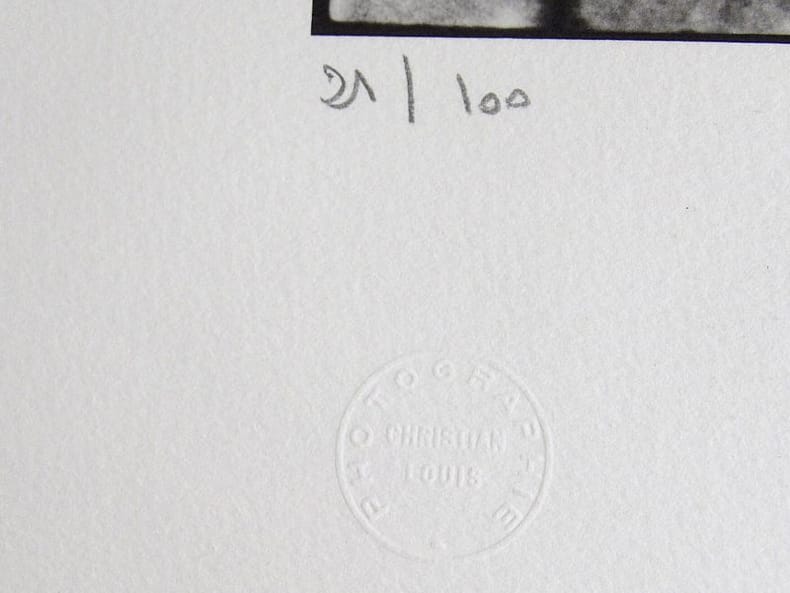 Sans lieu, sans mention d'éditeur, sans date (circa 1970-1995). 50 x 65 cm. Tirage photographique original sur papier d'Arches. Tirage limité à 100 exemplaires, numérotés et signés au crayon par le photographe. Tampon à sec "Photographie Christian Louis".