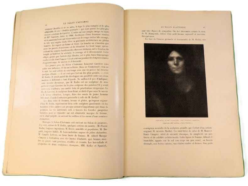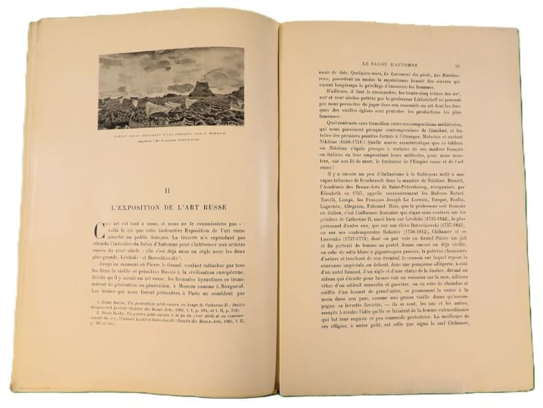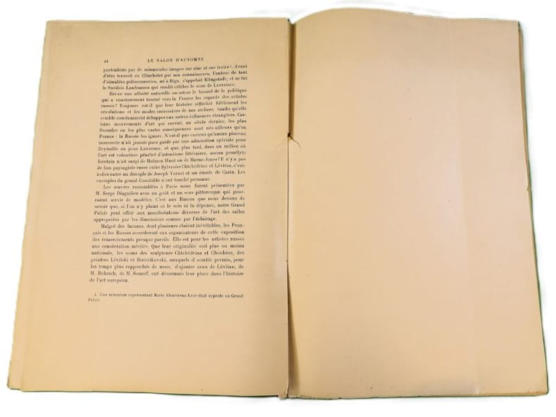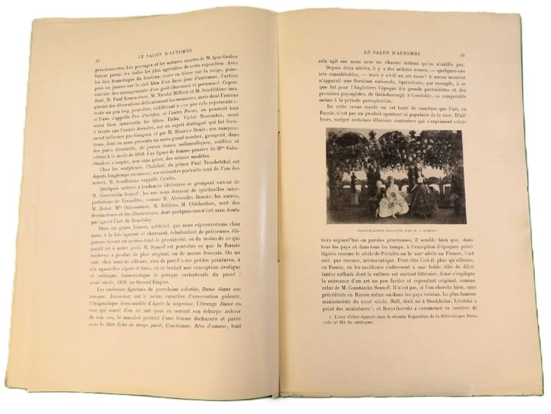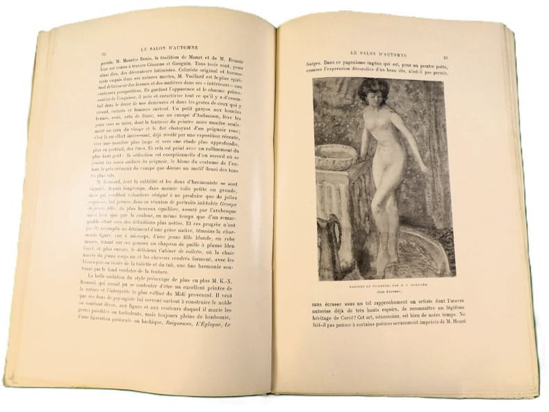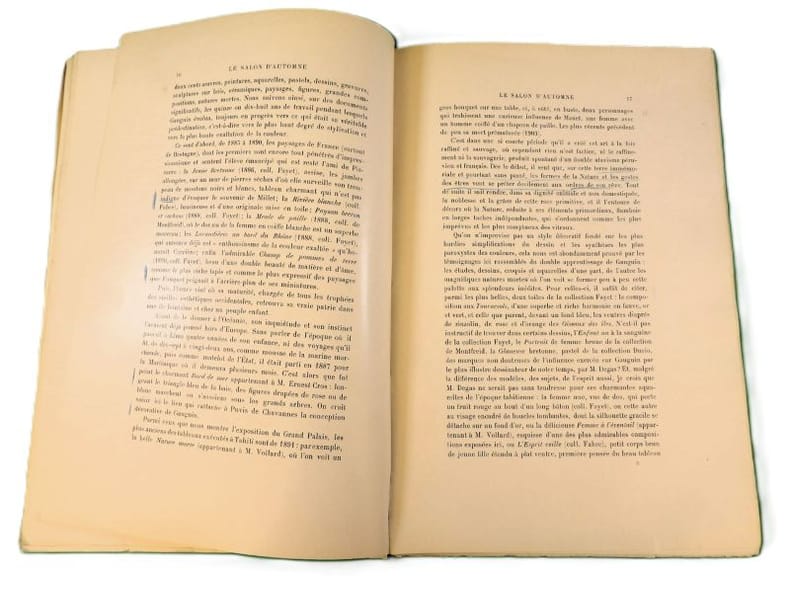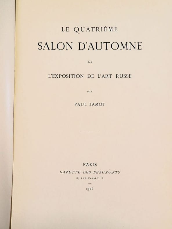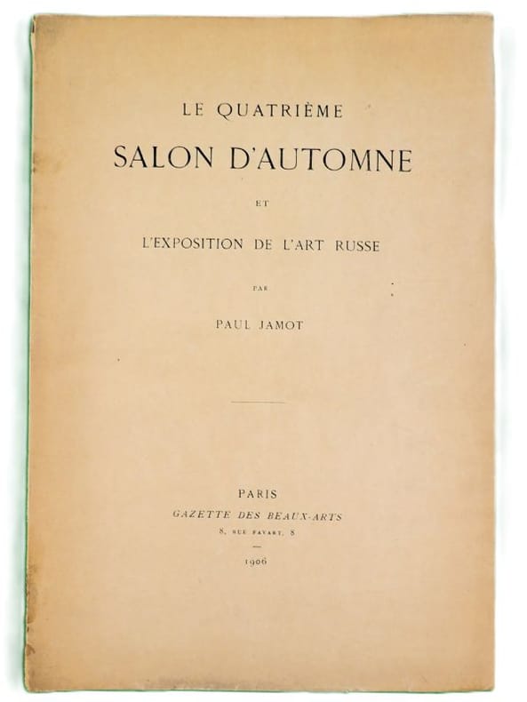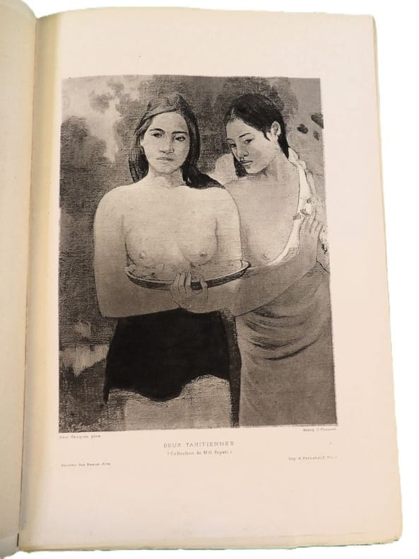 Paris, Gazette des Beaux-Arts, 1906. 28 x 19,5 cm. Broché, 44 Pages paginées, 2 planches hors texte. Rare brochure de référence, par le conservateur au Louvre, critique d’art et collectionneur Paul Jamot. Sont ici commentées et reproduites des oeuvres de Ker-Xavier Roussel, Eugène Carrière, Paul Gauguin – dont les "Deux tahitiennes" en hors texte –, Pierre Bonnard, Charles Guérin, Pierre-Louis Moreau, Simon Bussy, Eugène Martel, Nicolas Röhrich, Théodose Chtchédrine, Nathalie Séménova Bortchov, Isaac Lévitan, Constantin Bogaievski, Constantin Somoff, etc.