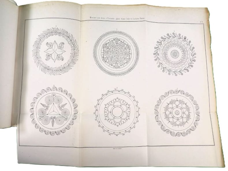 P., , 1860, in-8, 279 pp. illustrées de 35 planches hors-texte (sur 38) dont 3 dépliantes (la planche 18 présente un manque dans sa marge inférieure et la planche 38 dans sa partie supérieure) . Infimes rousseurs in texte. Vicaire, 62 annonce par erreur 39 planches relié demi-velin à la bradel, couverture restaurée conservée