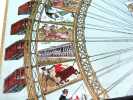Petites traces de frottements sur les coupes, sinon bel état de conservation pour ce jeu devenu rare et recherché des collectionneurs. Manufacture « de boîtes en tout genre » fondée dans les années 1880-1890 à Gérardmer (Vosges) par Lucien Napoléon Simonin et Agathe Cuny, son épouse, la maison s'oriente peu à peu vers la fabrication de jouets (poupées, ménagères, figurines) et jeux de société. Elle s'établit au 156 rue Oberkampf à Paris en 1898, et adopte comme emblème les initiales de ses dirigeants en encadrement des armes de la capitale. A l'instar de nombre de ses confrères, l'entreprise s'inspire de l'actualité pour créer certains de ses jeux. En l'occurrence, cette grande roue, conçue comme un symbole de l'Exposition universelle de Paris en 1900, édifiée avenue de Suffren, face à la Galerie des Machines, qui imite le gigantisme de la Tour Eiffel lors de l’Exposition de 1889 : 93 m de diamètre, un piédestal de 3 m, - ce qui la fait culminer à 96 m de hauteur -, 40 nacelles de 13 m de long pouvant transporter chacune 30 personnes, et un mécanisme à vapeur d'une puissance de 120 chevaux pour la faire tourner. Propriété de Théodore Vienne, fondateur du Paris-Roubaix, qui en assure également la gestion, la roue sera désassemblée et démontée en 1920-1922. Des nacelles seront récupérées par des chiffonniers pour servir d’échoppes, embryons du futur Village suisse des antiquaires. Quant à la maison Simonin-Cuny, elle cesse son activité en 1904, absorbée avec Mauclair-Dacier, AGWL et d’autres dans la société JJF, Jeux et Jouets français. - Clients Livre Rare Book : Les frais postaux indiqués sont ceux pour la France métropolitaine et la Corse, pour les autres destinations, merci de contacter la librairie pour connaître le montant des frais d'expédition, merci de votre compréhension. Livre Rare Book Customers : The shipping fees indicated are only for France, if you want international shipping please contact us before placing your order, thank you for your understanding. - Frais de port : -Colissimo France 9,5 € -Colissimo International (Union Européenne + Suisse : 20 €) (Reste du Monde : 40 €)