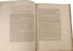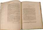 Rousseurs et piqûres sur les pages de texte, un manque angulaire sur le premier plat de la couverture d’origine, sinon bel et rare exemplaire. C'est le gouverneur général de l'Algérie qui, en 1849, « appela l'attention du Ministre de la guerre sur la convenance qu'il pouvait y avoir à se concerter avec les départements de l'intérieur et des travaux publics, à l'effet d'arrêter des teintes conventionnelles uniformes à employer, tant par les services civils que par les services militaires, pour le lavis des plans d'alignement des villes de la métropole, aussi bien que de l'Algérie ». Une commission mixte (réunissant des représentants de divers ministères) constituée en 1853 statua de manière « définitive » sur la question en produisant un rapport, objet du présent ouvrage. - Clients Livre Rare Book : Les frais postaux indiqués sont ceux pour la France métropolitaine et la Corse, pour les autres destinations, merci de contacter la librairie pour connaître le montant des frais d'expédition, merci de votre compréhension. Livre Rare Book Customers : The shipping fees indicated are only for France, if you want international shipping please contact us before placing your order, thank you for your understanding. - Frais de port : -Colissimo France 11 € -Colissimo International (Union Européenne + Suisse : 23 €) (Reste du Monde : 55 €)