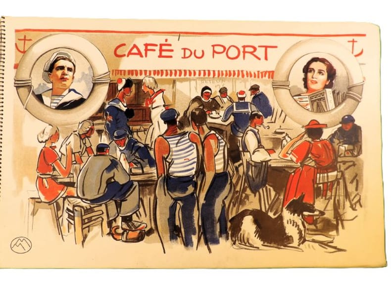 Couverture tachée et salie, une infime déchirure en pied de page et une trace de pliure sur le 2e feuillet, sinon bel état de conservation pour cet exemplaire de toute rareté. Dominique Charles Fouqueray (Le Mans,1869 - Paris,1956). Peintre officiel de la Marine en 1908, aquarelliste, graveur, il est aussi illustrateur d'oeuvres littéraires ou d'organes de presse, affichiste et décorateur (de bâtiments publics). Président de la Société coloniale des Artistes français, il effectue de nombreux voyages, notamment au Moyen-Orient (Turquie, Syrie, Palestine) et en Arabie saoudite, se tournant de plus en plus vers un style orientaliste. Il a reçu de nombreux prix et distinction au cours de sa carrière. De la même génération, Albert Sébille (Marseille, 1874 - Paris 1953), élève de Léon Gérôme aux Beaux-Arts de Paris, reçoit le titre de peintre officiel de la Marine en 1906. Egalement aquarelliste, il collabore avec la Compagnie Générale Transatlantique en tant que conseiller technique pour des paquebots (dont le célèbre Normandie) et signe des affiches publicitaires durant la période Art Déco. Comme les précédents, Mathurin Méheut (Lamballe, 1882 - Paris 1958) devient peintre officiel de la Marine (en 1921) et demeure principalement connu pour son abondante oeuvre picturale consacrée à sa Bretagne natale. Artiste polyvalent, il fut aussi décorateur (de navires ou d'habitations), céramiste, illustrateur et sculpteur. Parmi ses réalisations, figurent des estampes, des cartons de tapisserie, des illustrations de menus, calendriers, catalogues ou livres, ou encore des objets publicitaires (boîtes de confiserie ou de parfum). Son enseignement aux Ecoles Boulle, Estienne et aux Beaux-Arts de Rennes ont marqué plusieurs générations d'étudiants, et sa participation à de nombreuses expositions ou salons prestigieux a consacré sa réputation. Géo Ham ou Georges Hamel à l'état-civil (Laval, 1900 - Paris, 1972) a été nommé, lui, peintre officiel de l'Air pour le compte de l'Aéropostale, en 1931. Nouveau "peintre de la vitesse" après Ernest Montaut, ce passionné de courses automobiles et d'aviation se fait un nom en tant que caricaturiste et dessinateur de presse, avant que le journal L'illustration ne s'attache ses services à partir des années 1920. Il réalise également des affiches ou illustre des catalogues pour de prestigieuses marques de voitures telles que Rolls-Royce, Talbot, Delahaye, Chenard et Walker... La carrière de Lucien Jonas (Anzin, 1880- Paris, 1947) montre diverses similitudes avec celles des autres illustrateurs. S'il est inspiré principalement, lui, par la région minière de Valenciennes, où demeure sa famille, propriétaire d'une distillerie, c'est à Paris qu'il étudie, travaille, expose et collectionne les prix (Second Prix de Rome en 1905, médaille d'or en 1907)... La Première Guerre mondiale est pour lui une période d'intense production, car après avoir été agréé "peintre militaire attaché au Musée de l'Armée" en 1915, il reçoit le titre de peintre officiel de la Marine l'année suivante. A l'instar de Géo Ham, il devient peintre de l'Air en 1931. L'éclectisme caractérise sa création, puisqu'on lui doit en outre des décors muraux (par exemple pour l'Exposition de 1937), des illustrations d'ouvrages et de billets de banque, des portraits, des cartons de tapisserie...Bernard Lancy (1892-1964), illustrateur, est ici le seul spécialiste de l'affiche de films, et figure parmi les meilleures signatures de la période dite de "l'âge d'or du cinéma français" (1930-1945), avec Jacques Bonneaud, René Péron, Carlo Mariani, Henri Cerutti, Claude Belinsky, Boris Grinsson et Roger Soubie. Au cours des années trente, il oeuvre notamment pour King Vidor (L'oiseau de paradis), les studios Disney (Blanche-Neige et les sept nains), Anatole Litvak (Cette vieille canaille), Pierre Colombier (Ces Messieurs de la Santé), André Berthommieu (L'amant de Madame Vidal, Le mort en fuite), Marcel L'Herbier (La citadelle du silence), Jean Renoir (La Grande illusion), Marcel Carné (Drôle de Drame, Le jour se lève), etc. Il sera tout aussi prolifique dans la décennie suivante, réalisant des affiches pour des cinéastes américains (Disney, John Ford, Hitchcock, George Cukor, Robert Wise), allemands, italiens, et bien sûr, travaillant pour de prestigieux auteurs français (Christian-Jaque, C. Autant-Lara, Y. Allégret, R. Bresson, A. Malraux, J. Feyder, J. Duvivier, R. Clair...). En 1945, il est président d'honneur du Syndicat des affichistes de cinéma, désormais indépendant de celui des affichistes publicitaires. - Clients Livre Rare Book : Les frais postaux indiqués sont ceux pour la France métropolitaine et la Corse, pour les autres destinations, merci de contacter la librairie pour connaître le montant des frais d'expédition, merci de votre compréhension. Livre Rare Book Customers : The shipping fees indicated are only for France, if you want international shipping please contact us before placing your order, thank you for your understanding. - Frais de port : -Colissimo France 9,5 € -Colissimo International (Union Européenne + Suisse : 20 €) (Reste du Monde : 40 €)