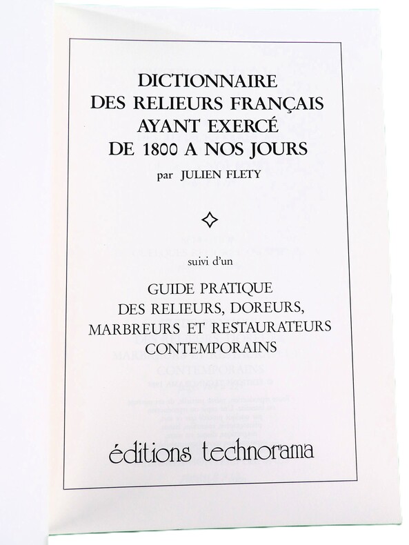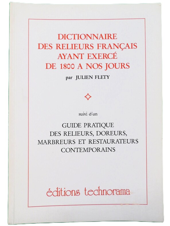 Sans lieu (Argenton-sur-Creuse Indre), Editions Technorama, 1988. In-8 - 16,5x24cm. Broché, dos et premier plat titré. 225pp, LX + feuillet d'errata. Ouvrage de référence pour les amateurs de belles reliures, de toute rareté. Exemplaire bien complet de son feuillet volant d'errata (en deux exemplaires).
