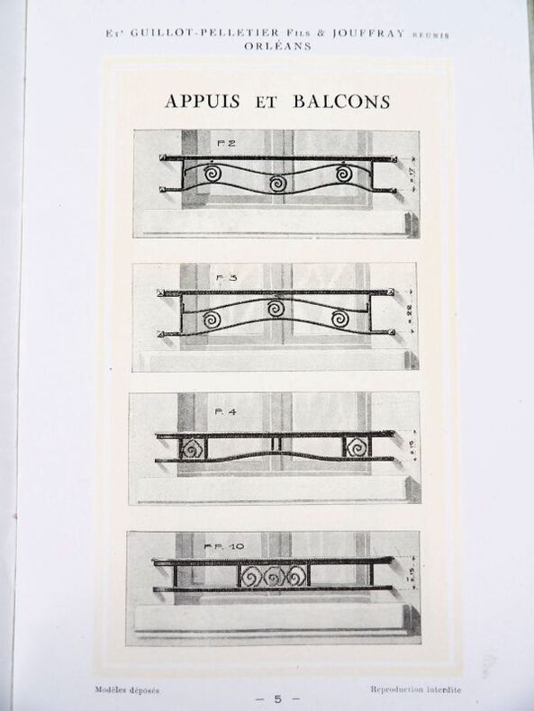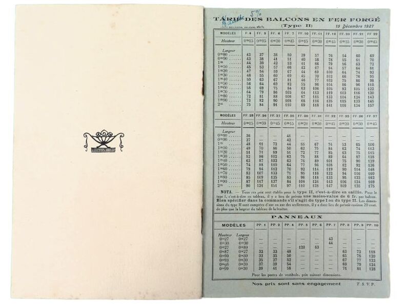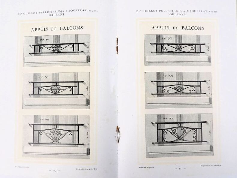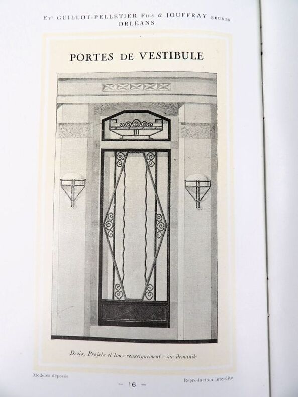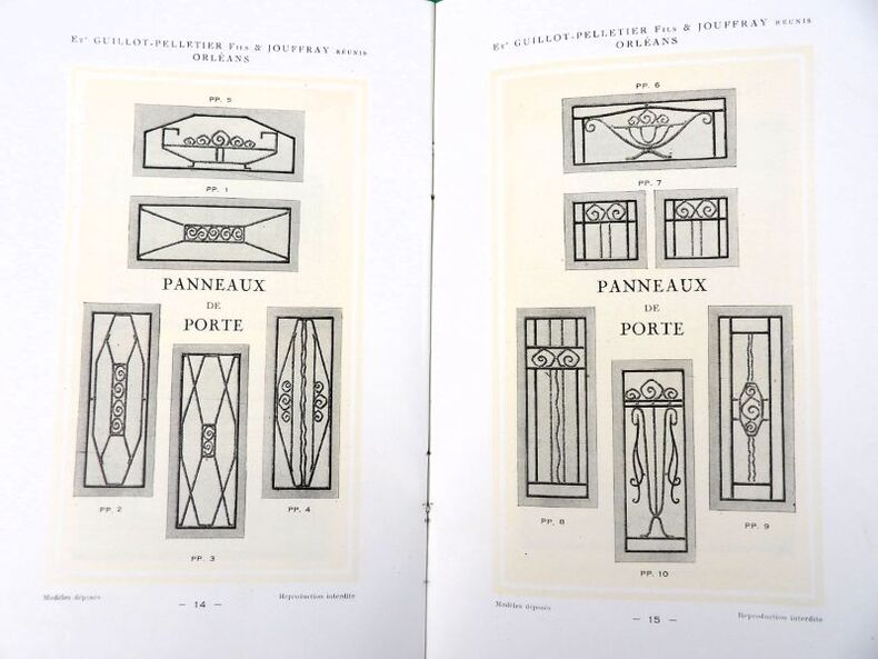 Orléans, Ets Guillot-Pelletier Fils & Jouffray réunis (imprimerie Martin-Mamy Crouan & Roques, Lille-Paris), 1927. 21 x 13,5 cm. Broché. 20 Pages paginées + feuillet de tarif. Catalogue illustré, dans un style Art Déco très marqué.