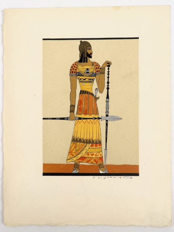(Paris), (1923). 20,5 x 15,5 cm. Gravure sur bois hors-texte en couleurs, illustration de l'oeuvre de Flaubert, Salammbô.