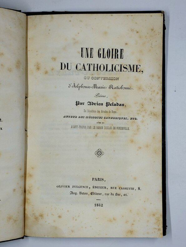 Paris, Olivier Fulgence, éditeur, 1842, E.O. In-8°, xviii-59 pp., intérieur frais (qqs. rouss., pâle mouillure en coin inf. de l'ensemble du vol.). Reliure demi-percaline bleu-vert, plats de papier marbré, sod lisse muet (reliure lég. frottée, coins émoussés). Bel exemplaire sinon.