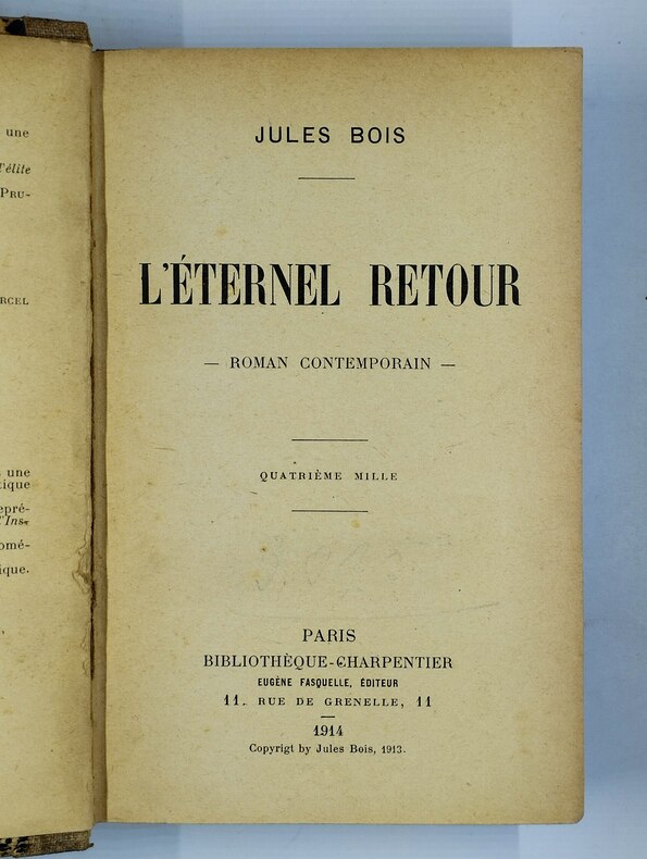 EUGENE FASQUELLE. 1914. In-12. Broché. Etat d'usage, Couv. défraîchie, Dos abîmé, Quelques rousseurs. 396 Pages. Livre partiellement désolidarisé. Dos abimé. Quelques rousseurs sans conséquence pour la lecture.. . . . Classification Dewey : 840.091-XX ème siècle