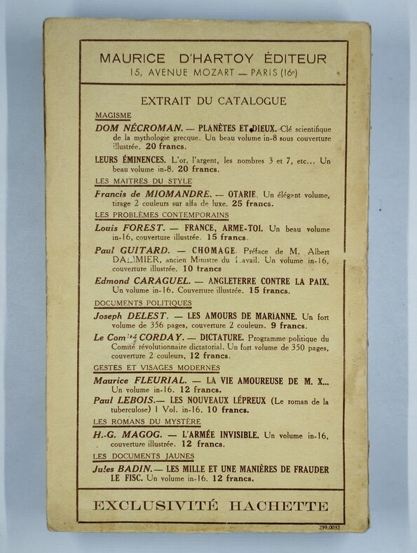 Paris, Maurice d'Hartoy, éditeur, 1933. In-8°, 295 pp., pll. dépliante in fine, intérieur frais. Br. Bon état général.