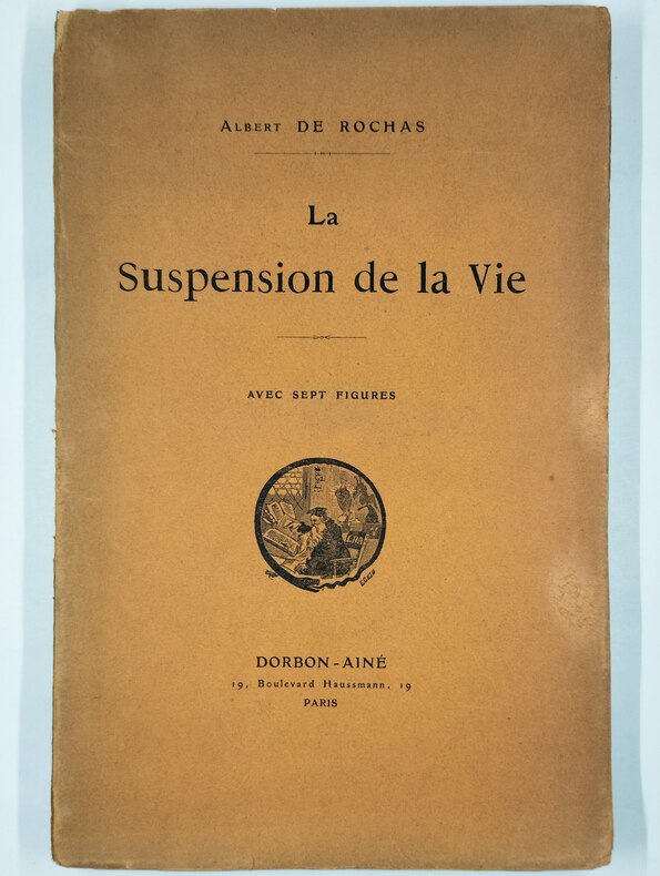 Dorbon-Ainé Paris S.D. (1913) In-8 ( 250 X 165 mm ) de 110 pages, broché sous couverture imprimée. 7 figures dans le texte. Edition originale. Ancienne mouillure sur le dos, bon exemplaire.Synopsis:Les longs jeûnes Les longs sommeils : la dormeuse de Thenelles, la dormeuse abstinente du Pays de Galles, la dormeuse d'Alençon - son réveil par la narcose éthyl-méthylique, la dormeuse de Saint-Marcel La mort apparente chez l'homme : la léthargie et les signes de la mort, la suspension volontaire de la vie et l'inhumation temporaire des fakirs, inhumations volontaires de bonzes dans le Cambodge, les fakirs en Europe La suspension de la vie dans les organismes inférieurs.