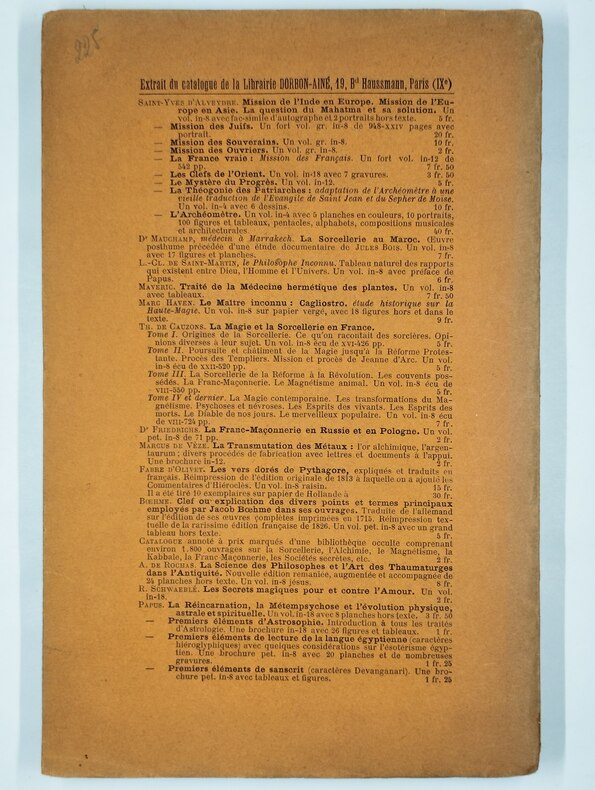 Avec sept figures. Dorbon-Aîné, Paris, (1913). In-8 (mm. 245x160), mz. pergamena mod. con ang., titolo ms. al dorso, pp. 110, con 7 interessanti figure nel t.Cfr. Bibliotheca Esoterica,4195: On verra dans cette étude que l'organisme humain est capable de supporter de très longs jeunes et peut rester pendant plusieurs années dans l'état si voisin de la mort qu'est le sommeil. Cela rendra moins vraisemblables les récit des hagiographes et les inhumations temporaires des fakirs.. (ainsi Préface) - Devenu très rareLuogo e firma d'apparten. mss. al frontesp.; testo molto ben conservato.