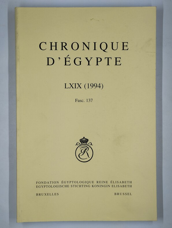 Bruxelles, fondation égyptologique Reine Elisabeth, 1994. In-8°, 200 pp., ill. n&b, intérieur frais. Br. Bon état général.