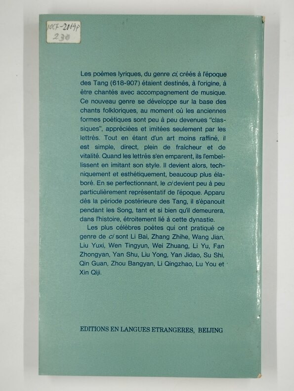 Beijing, éditions en langues étrangères, 1987. In-8°, viii-193 pp., intérieur frais. Br. couv. ill. couleur. Bon état général.
