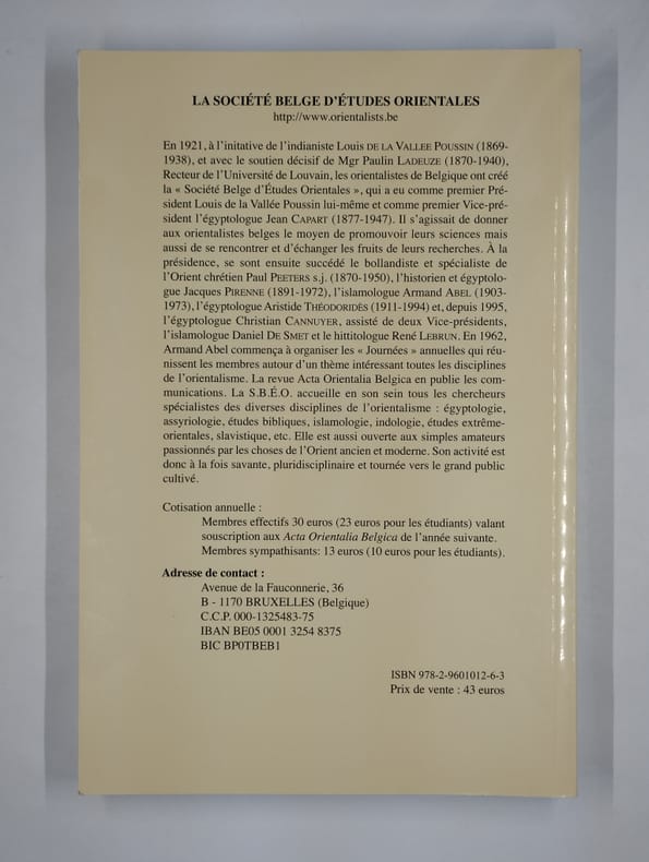 Bruxelles, société belge d'études orientales, acta orientalia belgica XXIX, 2016. In-8°, xxx-306 pp., ill. couleur et n&b, intérieur frais. Br. Bon état général.