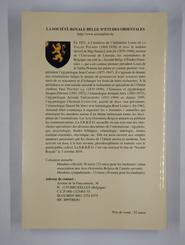 Bruxelles, société belge d'études orientales, acta orientalia belgica XXXIII, 2020. In-8°, xxxi-387 pp., ill. couleur et n&b, intérieur frais. Br. Proche du neuf.
