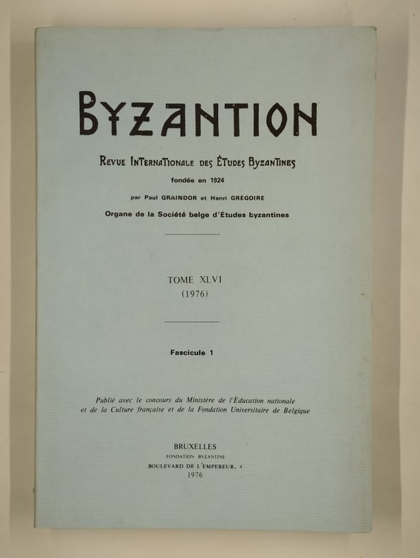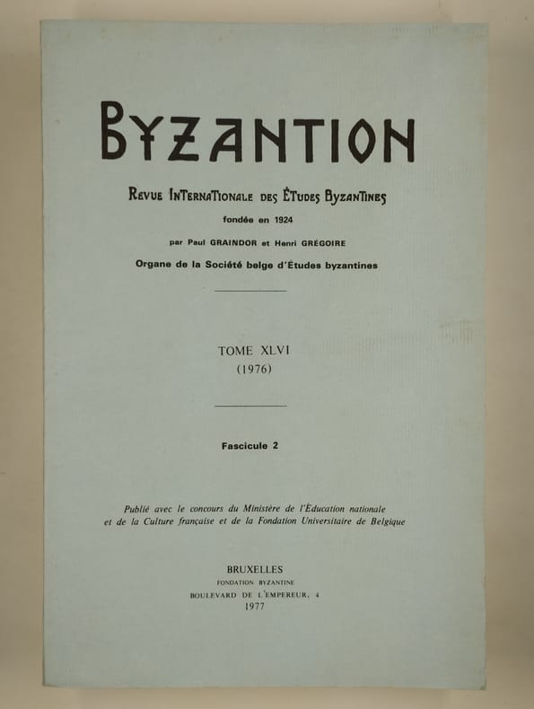 Bruxelles, Société belge d'Etudes byzantines 1976-1977 Tome 46 complet en 2 fascicules: ensemble 619pp. + quelques planches hors-texte, 25cm., brochures originales, contient des contributions en langues diverses, non coupé, très bon état, poids: 1kg., X93146