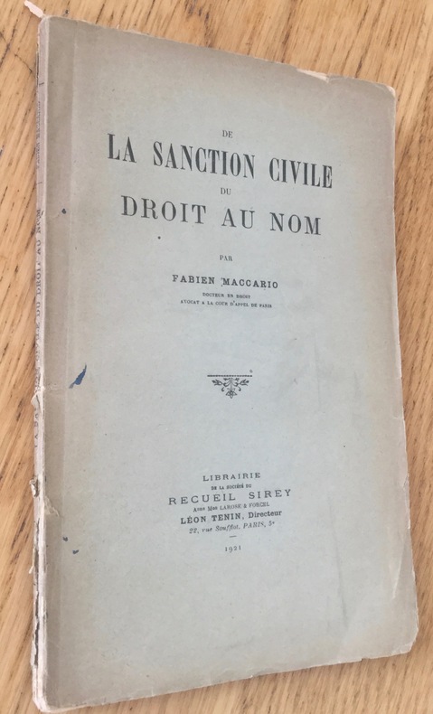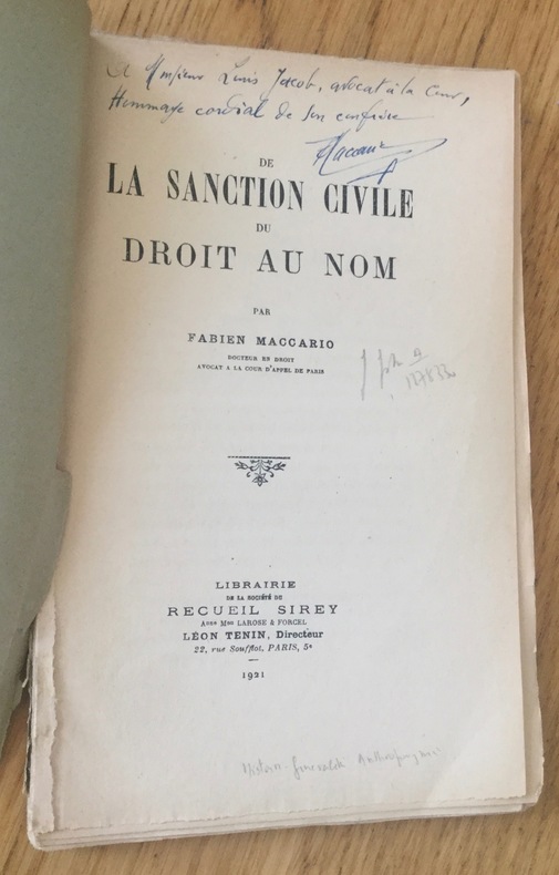Brochure de format in-8, Librairie de la Société du Recueil Sirey, 1921, 96 pp. Frottée et jaunie, petites déchirures et pliures, manque sur la coiffe inférieure. Fait un peu son âge, intérieur propre, rare. Exemplaire orné d’un envoi autographe signé de l'auteur à l'avocat à la Cour Louis Jacob. Poids 130 g. Envoi lettre verte. Frais d'envoi 3,88 euros sur la France, 7 euros pour l’étranger (tarifs de base hors envois suivis). Possibilité de remise en mains propres sur Paris, possibilité d’envoi MONDIAL RELAY, n’hésitez pas à me contacter avant de passer commande. Twitter : @Pontneuf06.