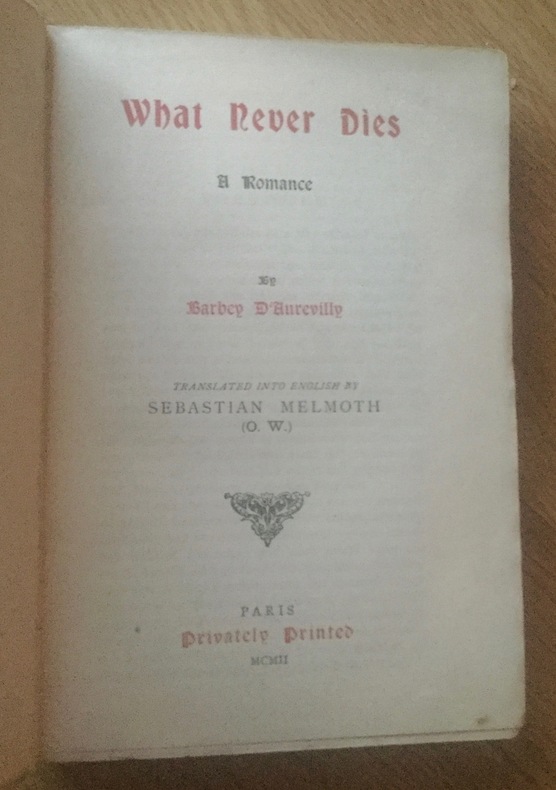 In-12, reliure de vélin crème, dos lisse avec titre en noir et en long, encadrement noir sur les plats portant au centre les initiales "O.W.", tête dorée, non rogné, 1902, 360 pp. Édition originale de cette traduction anglaise faussement attribuée à Oscar Wilde sous son pseudonyme de Sebastian Melmoth. Tirage unique à 500 exemplaires "for private circulation only, among friends and subscribers". On sait aujourd'hui que l'éditeur de ce livre, Charles Carrington, inventa cette filiation avec Wilde pour augmenter les ventes. L'avant-propos est d'ailleurs entièrement consacré au célèbre écrivain irlandais disparu deux ans auparavant. Une curiosité. Plaisant exemplaire relié au chiffre d'Oscar Wilde. Poids 350 g. Envoi lettre verte. Frais d'envoi 6 euros sur la France, 12,20 euros pour l’étranger (tarifs de base hors envois suivis). Possibilité de remise en mains propres sur Paris, possibilité d’envoi MONDIAL RELAY, n'hésitez pas à me contacter avant de passer commande. Twitter : @Pontneuf06.
