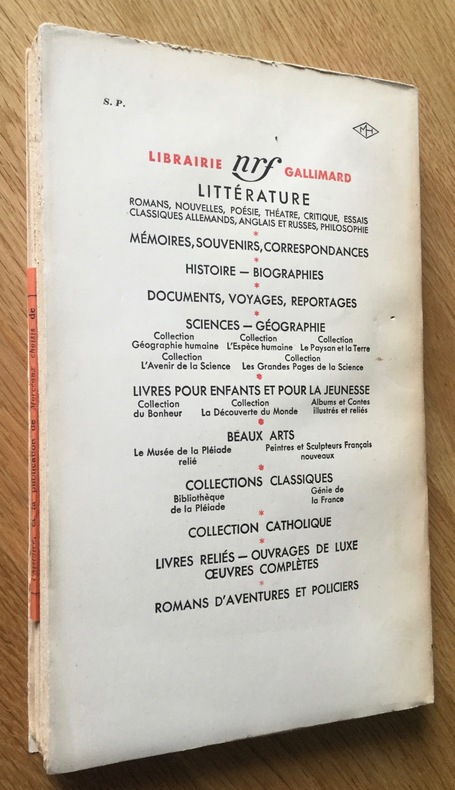 Gallimard.1940.In-8 br.264 p.Etat moyen.Qques traits de crayon en marge,sans gène.