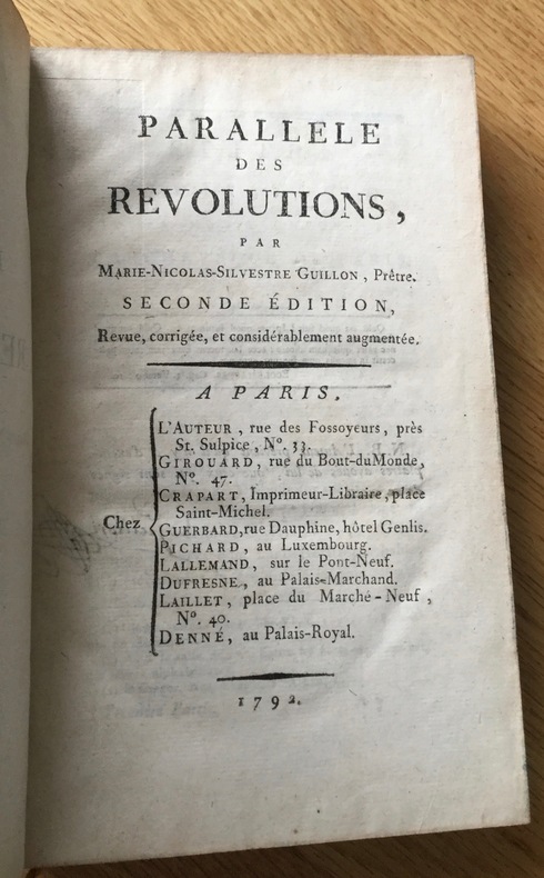 Paris, Girouard et all. 1792, 220x135mm, 424pages, broché. Non rogné, couverture muette, manque la couveture supérieure. Pages cornées mais complet.
