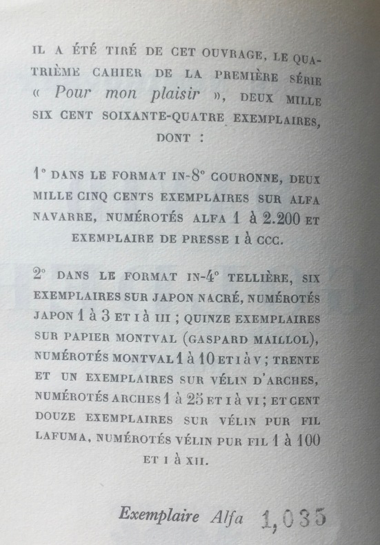 Lyon, Cercle Lyonnais du Livre, achevé d'imprimer à Paris le 10 mars 1948 sur les presses de Fequet et Baudier, typographes, et par Georges Leblanc, imprimeur en taille douce. Au format 25 x 32, 196 pages, en feuilles, sur vélin du Marais. Avec 39 Cuivres originaux de Jean Auscher. Tirage à 160 exemplaires numérotés et nominatifs - dont 30 avec une suite des planches avec rehauts de couleurs. Notre exemplaire est accompagné d'une suite, et comprend le menu du "Banquet "David Golder"" du 30 avril 1948, chez Foillard, rue Stella à Lyon - accompagné d'une gravure qui représente les protagonistes qui consultent l'ouvrage d'Irène Nemirovsky (voir photo).