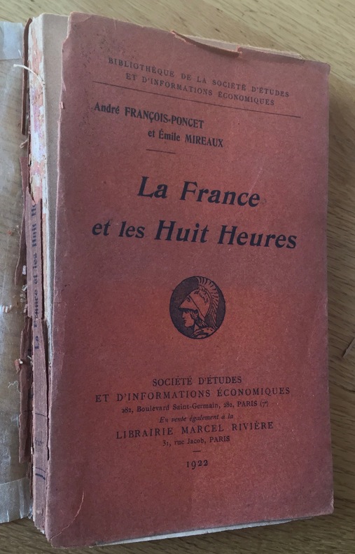 In-8 qui fut broché, sous papier cristal, Société d’études et d’informations économiques, 1922, 270 pp. Couverture détachée, dos très abîmé, traits de crayons sur certains passages… Exemplaire de travail, éventuellement à relier, de ce titre très rare. Poids 250 g. Envoi lettre verte. Frais d’envoi 6,30 euros sur la France, 14,55 euros pour l’étranger (tarifs de base hors envois suivis). Possibilité de remise en mains propres sur Paris, possibilité d’envoi MONDIAL RELAY, n'hésitez pas à me contacter avant de passer commande. Twitter : @Pontneuf06.