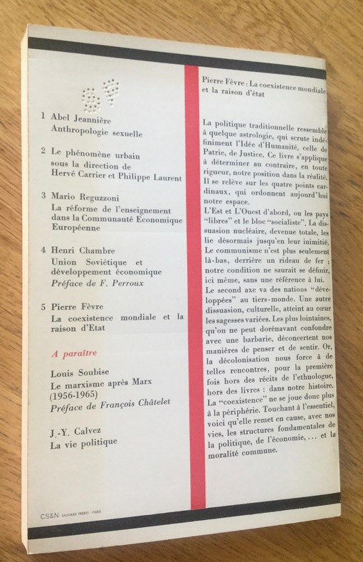 In-8 broché, Aubier-Montaigne, coll. "Recherches économiques et sociales", 1967, 226 pp. Un peu frotté et jauni, quatrième plat partiellement insolé. Bon état général. Bon exemplaire de l’édition originale (service de presse sans grands papiers annoncés) de ce titre rare, orné d’un envoi autographe signé de l’auteur au fondateur et directeur du "Monde", Hubert Beuve-Méry. Poids 250 g. Envoi lettre verte. Frais d'envoi 6,70 euros sur la France, 15,50 euros pour l’étranger (tarifs de base hors envois suivis). Possibilité de remise en mains propres sur Paris, possibilité d’envoi MONDIAL RELAY, n'hésitez pas à me contacter avant de passer commande. Twitter : @Pontneuf06.