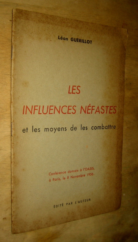 Brochure in-8 éditée par l'auteur, 1957, 18 pp. Couverture très piquée, bon état par ailleurs. Conférence donnée à l'OASIS, Paris, le 8 novembre 1956. Poids 50 g. Frais d'envoi 1,55 euro sur la France, 1,80 euro UE et Suisse, 2,35 euros pour le reste du monde (tarifs de base hors envois suivis).
