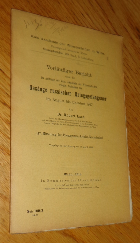 In-8 broché, Alfred Hölder, Vienne, 1918, 64 pp. Couvertures un peu jaunies et piquées avec nombreuses petites déchirures, intérieur propre et non coupé. Poids 100 g. Frais d'envoi 3,20 euros sur la France, 5 euros UE et Suisse, 6,25 euros pour le reste du monde (tarifs de base hors envois suivis). Possibilité de remise en mains propres sur Paris, n'hésitez pas à me contacter avant de passer commande.
