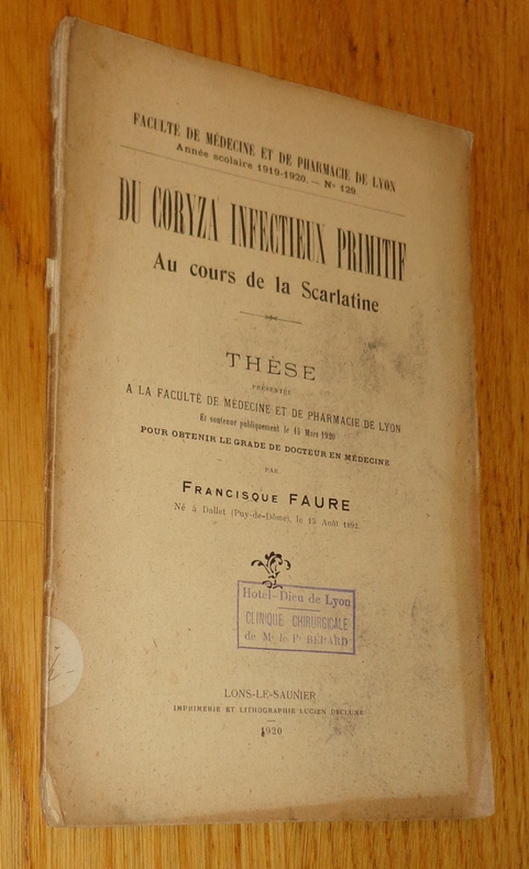 In-8 broché, Imprimerie et lithographie Lucien Declume, Lons-le-Saunier, 1920, 38 pp. Exemplaire assez usé, piqué, dos abîmé, pliures, tampon de bibliothèque et étiquette de cote… Fait son âge. Intérieur non coupé. Rare. Poids 100 g. Frais d'envoi 3,20 euros sur la France, 5 euros UE et Suisse, 6,25 euros pour le reste du monde (tarifs de base hors envois suivis). Possibilité de remise en mains propres sur Paris, n'hésitez pas à me contacter avant de passer commande. Twitter : @Pontneuf06.