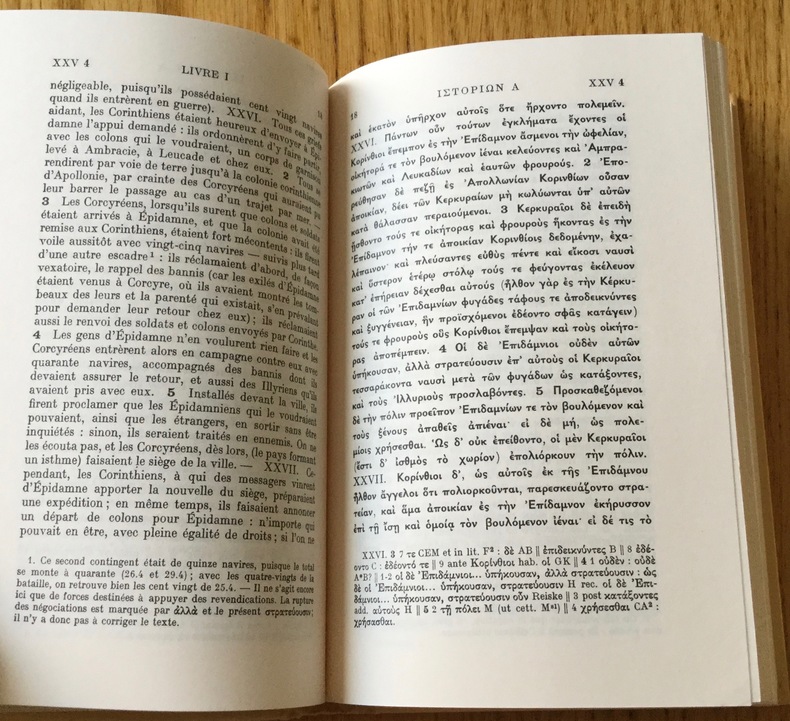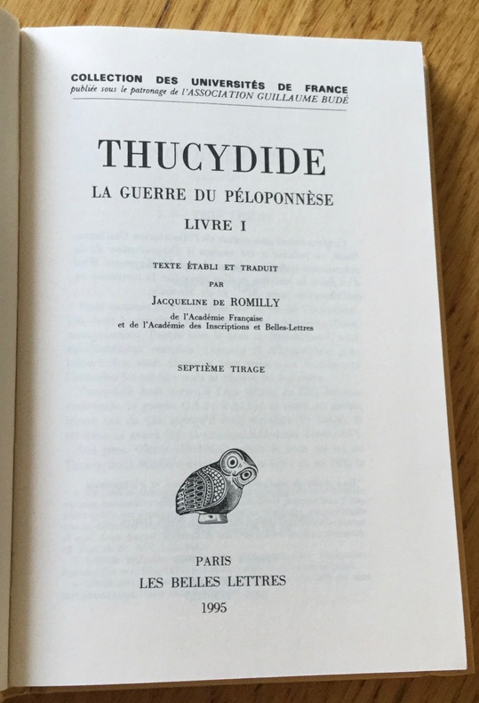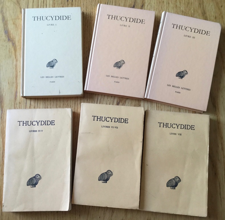 Six volumes de format in-8, les trois premiers cartonnés, les trois suivants brochés, Les Belles Lettres, 1972-1995. Un peu frottés et jaunis, quelques pliures, dos insolés… Usure d’usage, bon état général, bon ensemble complet et bilingue, dans la traduction de Jacqueline de Romilly. Poids total 2,1 kg. Envoi Colissimo. Frais d'envoi 13,15 euros sur la France, 21,50 UE et Suisse, entre 27,50 et 53,70 euros pour le reste du monde, à spécifier selon zone. Possibilité de remise en mains propres sur Paris, n'hésitez pas à me contacter avant de passer commande. Twitter : @Pontneuf06.