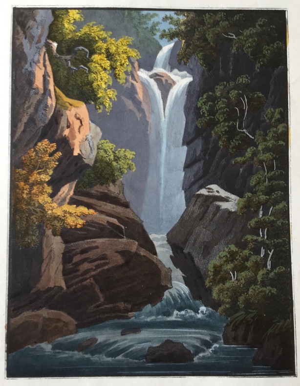 Gravure en couleurs, "Cascade de Chède", format 30,5/23,8 cm pour la feuille, 15/11,5 pour la gravure elle-même. Bel état - quelques rousseurs sur la feuille, dont une légère sur le titre. Sans date ni nom d'éditeur. Deux dates en revanche sur la feuille, 1844 et 1850, peut-être des dates de voyages dans la région. Frais d'envoi 3,80 euros sur la France, 6 euros UE et Suisse, 6,50 euros pour le reste du monde (tarifs de base hors envois suivis).