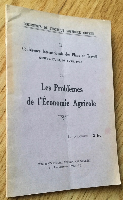 Brochure agrafée de format in-8, Centre confédéral d’éducation ouvrière, Documents de l’Institut supérieur ouvrier, 1936, 40 pp. Un peu frottée et jaunie, pliure verticale, usure d’usage, exemplaire de lecture. Texte de O. Gorni puis débats. Rare. Poids 60 g. Envoi lettre verte. Frais d'envoi 1,76 euro sur la France, 2,60 euros pour l’étranger (tarifs de base hors envois suivis). Twitter : @Pontneuf06.