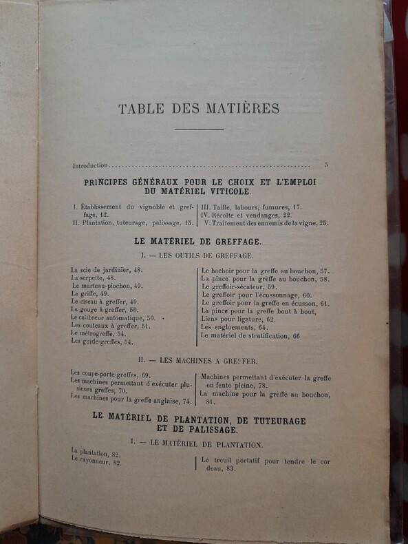 Précédé d'une étude générale sur le choix et l'emploi du matériel viticole par P.Viala, introduction par le Dr P.Regnard, avec 357 figures intercalées dans le texte, Encyclopédie agricole, Librairie J.B.Baillière et Fils 1991. Troisième mille.