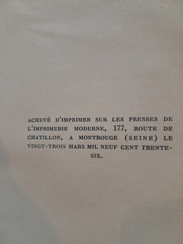 Traduit de l'anglais par Andhrée Vaillant, sicième édition, NRF Gallimard 1936.