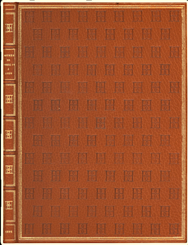 Œuvre de Pierre Matthieu, historiographe du «bon roi Henri». A Lyon, De l’Imprimerie de Pierre Michel. Avec privilège. 4 septembre 1595. In-4 de (4) ff. titre compris, 104 pages, 1 portrait à pleine page et 1 grande planche double. Maroquin caramel, triple filet doré, chiffre répété en semé sur les pats, dos orné du chiffre répété, doublure et gardes de moire chocolat (Honegger). 258 x 187 mm.