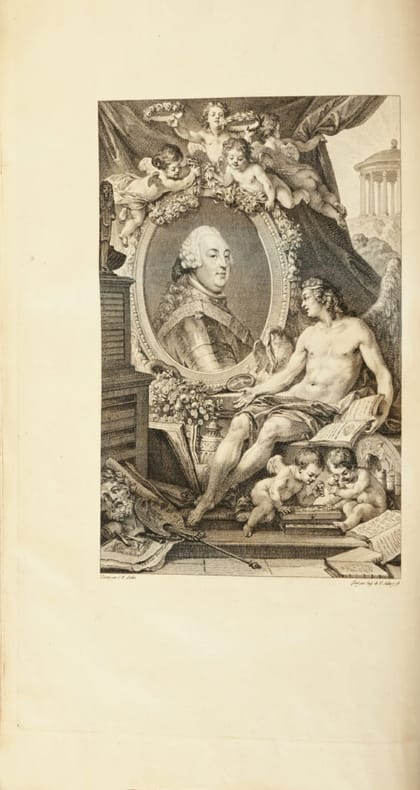 Edition originale - l’un des exemplaires du tirage de luxe sur grand papier de Hollande - reliée en demi-maroquin rouge de l’époque. Paris, chez M. l'abbé de La Chau, M. l'Abbé Le Blond, et chez Pissot, 1780-1784. 2 volumes in-folio de : I/ 1 frontispice, (16) ff., 303 pp. et 102 planches numérotées 97 (3 pl. 35, 3 pl. 39, 2 pl. 78); II/ (2) ff., v pp., (1) f., 215 pp., (5) pp., et 77 planches chiffrées 76. Demi-maroquin rouge à grain long, roulette dorée autour des plats, dos lisses ornés de filets et fleurons dorés, non rognés. Reliure de l’époque. 350 x 214 mm.
