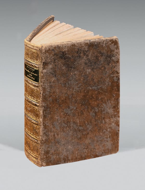 Considered at the time to be the best general description of China before Du Halde. Madrid, Joseph Fernandez de Buendia, 1665. In-16 de (20) ff., 188 pp. Basane brune, dos à nerfs très orné, pièce de titre de maroquin vert, tranches mouchetées. Reliure de l’époque. 145 x 98 mm.