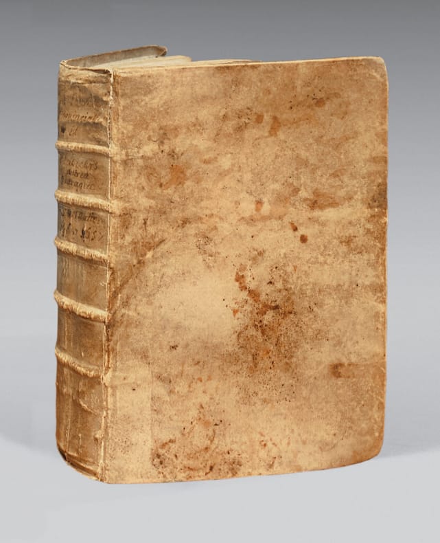 Cologne, Pierre de la Vallée, 1657. - Suivi de nombreuses pièces de controverses philosophiques, théologiques et religieuses s'échelonnant de 1655 À 1658, et d'une pièce de 1748. Table des pièces calligraphiée à l'époque sur les ff. préliminaires et portrait du Père Antoine Escabar, Théologien de la Compagnie de Jésus, ajouté. Ensemble 1volume in-4, vélin. Reliure de l'époque. 237 x 175 mm.