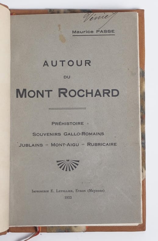 Table des matières : Préhistoire / Dolmens / Les Diablintes / Les vieux bains de Noiodunum / Les bains privés / Le théâtre / Noiodunum / Les derniers jours de Noiodunum / Mont-Aigu : Teutatès, Hermès, Mercure / En suivant la voie Romaine de Jublains au Mans / Rubricaire. Le mont Rochard se situe dans le département de la Mayenne, entre Mayenne et Sillé-le-Guillaume. Bon exemplaire.