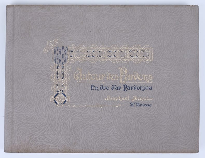 Très bel album photographique regroupant des vues des pardons de Plougastel, Penmarc'h, Pont-L'Abbé, Lesneven, Baud, Guéméné-sur-Scorff, Le Folgoët, Sainte-Anne d'Auray, Rumengol, Quimperlé, Pont-Aven, Saint-Brieuc.Le photographe Raphaël Binet (1880-1961) exerça son activité à Saint-Brieuc puis à Rennes. Il est spécialement connu pour ses photographies immortalisant les différents aspects de la culture bretonne.Quant à Leon Le Berre (1874-1946) et François-Joseph-Claude Jaffrennou (1879-1956), ce sont deux figures majeures du régionalisme breton. - - VENTE PAR CORRESPONDANCE UNIQUEMENT