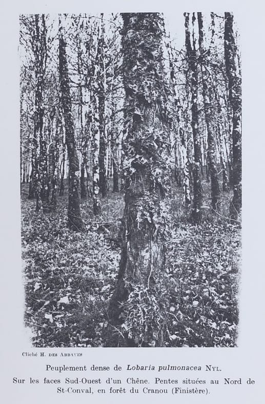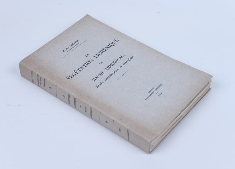 L'auteur, Henry Nicollon des Abbayes (1898-1974) était un botaniste spécialiste des lichens et professeur à l'université de Rennes. Il fut l’un des premiers lichénologues en Europe à mettre en évidence les rapports entre le substrat, le climat d’une région et les lichens qui y sont associés. Cet ouvrage sur la végétation lichénique du Massif armoricain est le résultat de ses recherches pour sa première thèse de doctorat à Paris. Ce travail a été reproduit dans le Bulletin de la Société des Sciences naturelles de l'Ouest de la France, 5e série, t. III, année 1933 (Nantes, 1934). Les planches in-fine reproduisent des photographies de Henry des Abbayes. Bon exemplaire ayant appartenu à la famille de l'auteur.