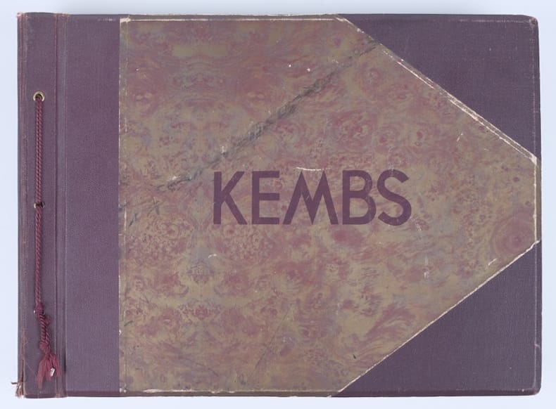 S.l., s.n., 1929-1932. 1 album petit in-folio oblong, (25 x 33,5 cm) ; [26] ff. Reliure en demi-toile bordeaux à grands coins tenue par un lacet bordeaux, dos lisse et muet, titre au premier plat. Légères usures et frottements à la reliure mais l’intérieur est en très bon état hormis parfois des marques de plis aux serpentes.
