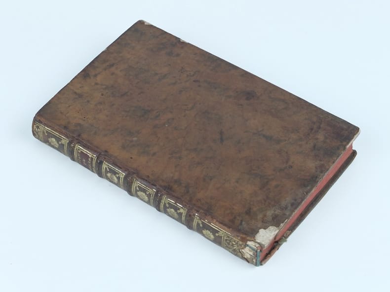 Luxembourg, Jean Marie Vander Kragt, 1735. 1 vol. in-8, (18,5 x 12 cm) ; VI-237-[7] pp.. Reliure en plein veau d'époque, dos à nerfs orné, pièce de titre de maroquin rouge, roulette dorée sur les coupes, tranches rouges. Coiffe supérieure, mors et coins légèrement frottés. Manque de cuir notable en pied, atteignant les plats. Marge latérale déchirée et manquante au ras du texte à la page 25. Petite tache brune à la marge inférieure des pages 85 à 88. Cahier M bruni.