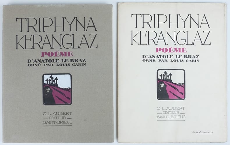 Cette chanson de Basse-Bretagne, d'abord parue en 1892, est affectueusement dédiée par l'auteur au poète Louis Tiercelin. Édition posthume (Anatole Le Braz meurt en 1926) illustrée par Louis Garin de neuf aquarelles hors texte et de 40 gravures sur bois en noir et framboise (une vignette de titre, 21 en-têtes et dix-huit culs-de-lampe). Les numéros de chapitres et lettrines sont également de couleur framboise. Tirage limité à 441 exemplaires. Un des 400 exemplaires sur papier de Rives, celui-ci n° 105, imprimé spécialement pour M. Paul Lory, bibliophile breton. Joint à cet exemplaire : le spécimen de souscription et une des 55 suites des illustrations.
