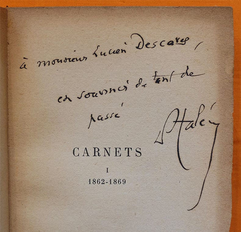 Carnets publiés avec une introduction et des notes par Daniel Halévy. Tome 1 seul (1862-1869). Avec un envoi de Daniel Halévy au faux-titre, "à Monsieur Lucien Descaves, en souvenir de tant de passé". Joint : coupures de presse, des notes manuscrites de Lucien Descaves et le spécimen de publication.