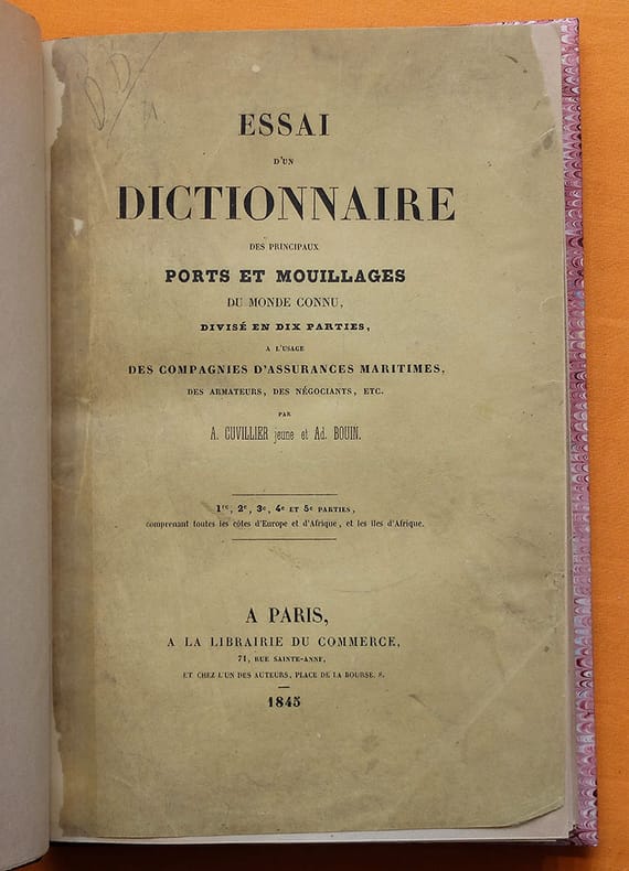 Ouvrage "indiquant, pour chaque lieu, les bancs ou dangers à éviter, les saisons d'hivernage, les vents ordinaires, les courants, etc. Avec un appendice dans lequel sont décrites les routes suivies ordinairement dans les voyages de long cours ; à l'usage des compagnies d'assurances maritimes, des armateurs, des négociants, etc." La couverture d'origine indique que cet ouvrage est divisé en dix parties et que ce volume contient les "1re, 2e, 3e, 4e et 5e parties, comprenant toutes les côtes d'Europe et d'Afrique, et les îles d'Afrique". Tampon à la page de titre : "Séminaire des Missions étrangères".