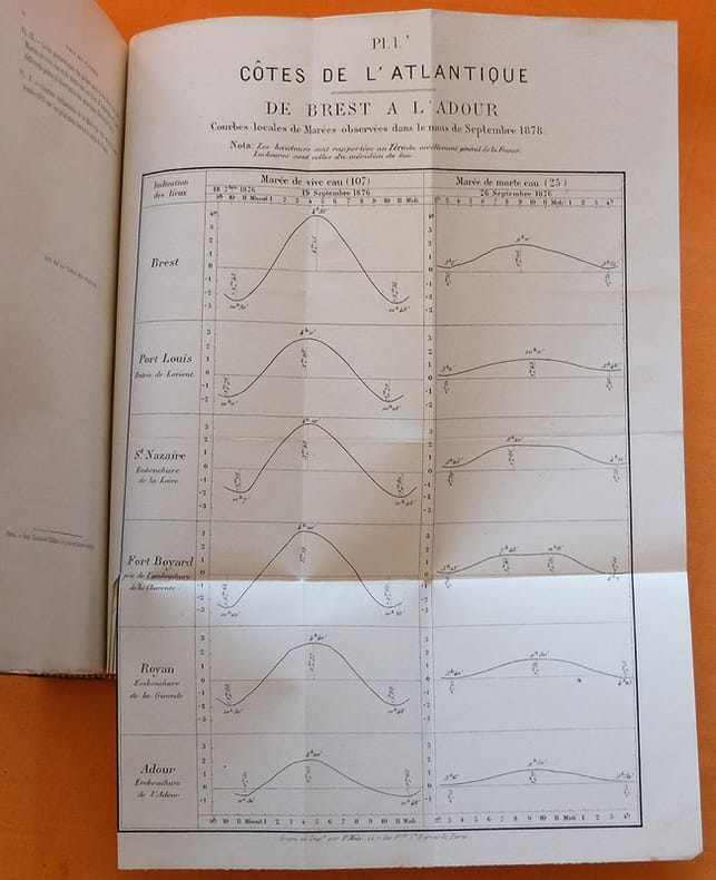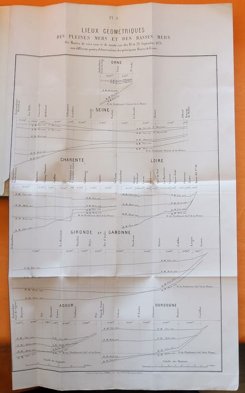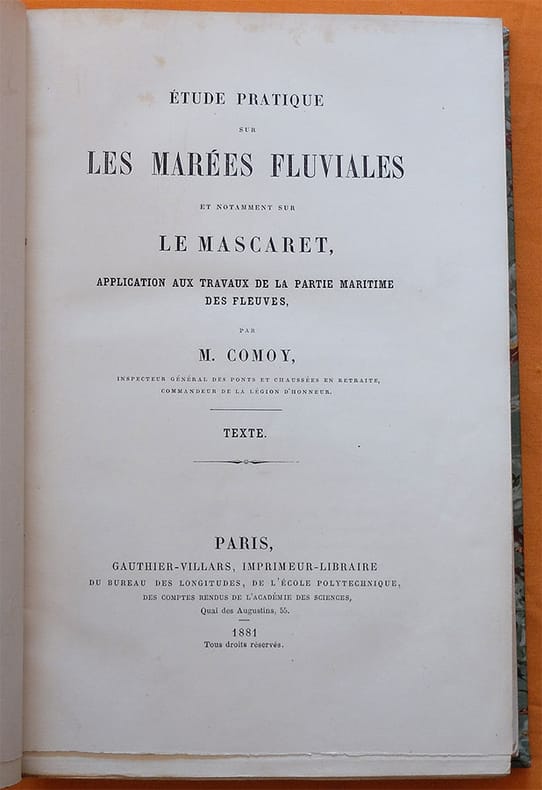Édition originale rare. Texte et atlas reliés ensemble. Guillaume Comoy (1803-1885) a été inspecteur général des Ponts et Chaussées et commandeur de la Légion d'honneur. Il a notamment travaillé sur les crues de la Loire pour l'Empereur Napoléon III. Ex-libris manuscrit au faux-titre "B. Saint-Guily" avec son tampon rouge.