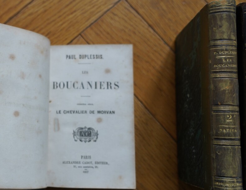 Fameuse histoire de la flibuste et des boucaniers des Antilles, parue pour la première fois en 1686. Cette édition contient le Journal du voyage fait à la Mer du Sud par Raveneau de Lussan, publié pour la première fois en 1689. Manque le tome 4 contenant l'Histoire des pirates anglois par le Capitaine Charles Johnson avec le récit des deux femmes pirates, Marie Read et Anne Bonny. Exemplaire bien complet de la liste des "noms des gouverneurs pour le roi sur la côte de Saint Domingue & ailleurs, avec ceux des principaux aventuriers flibustiers, dont il est parlé dans cette histoire", figurant à la fin du tome I. Alexandre-Olivier Oexmelin (ou Exquemelin), fils d'un apothicaire protestant de Honfleur, devient chirurgien après des études en Hollande. En 1666, il s'engage auprès de la Compagnie des Indes Occidentales et arrive à la Tortue en juillet. Vendu comme engagé pour trois ans, il rejoint ensuite les boucaniers puis la flibuste comme chirurgien de bord. Il participe notamment au sac de Panama en 1671 avec Henry Morgan et au pillage de Carthagène des Indes en 1697, l'une des attaques pirates les plus célèbres. M1-Et2